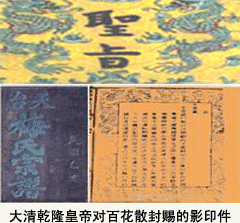 中國抗癌協會常務理事、河南省抗癌協會會長楊文獻教授和《百花散》傳人梅先生合影中國抗癌協會常務理事、河南省抗癌協會會長楊文獻教授和《百花散》傳人梅先生合影 據梅氏族譜記載,明末清初年間天臺縣深山有梅氏長者為當地草藥郎中,在深山采藥時,偶然進入人跡罕至的深澗,澗中飛瀑從天而降,懸崖峭壁環(huán)繞,古樹參天,奇花異草,蝶舞蜂飛,巖壁長滿靈蘭(鐵皮石斛仙人草)。深澗山洞中,有一石棺,棺中著明代服飾的白須老者栩栩如生,衣著完好;石桌有明朝正德年間治病強身《百花散》手抄醫(yī)書及白絹一幅,上有消化道腸胃、鼓漲病(肝腹水)、風濕關節(jié)等疾病配制方法。先人獲此神書神方,后依方所示,采澗中峭壁上之靈蘭、三七、猴頭菇和麝香等奇花異珍配制成不同系列的《百花散》,治療山民常見的消化道腸胃疾病、鼓漲病(肝腹水)、風濕關節(jié)疾病有奇效。山民食之,有病治病,無病健身。當地山民多長壽,童顏鶴發(fā)、身體強健的百歲老人隨處可見,均得益于神方《百花散》。當地民眾口碑相傳,美譽百花散為'神藥'、'藥王'。先人由此名聲大振,驚動大清朝庭,乾隆年間,皇帝多次下旨招先祖入朝并封賜。
